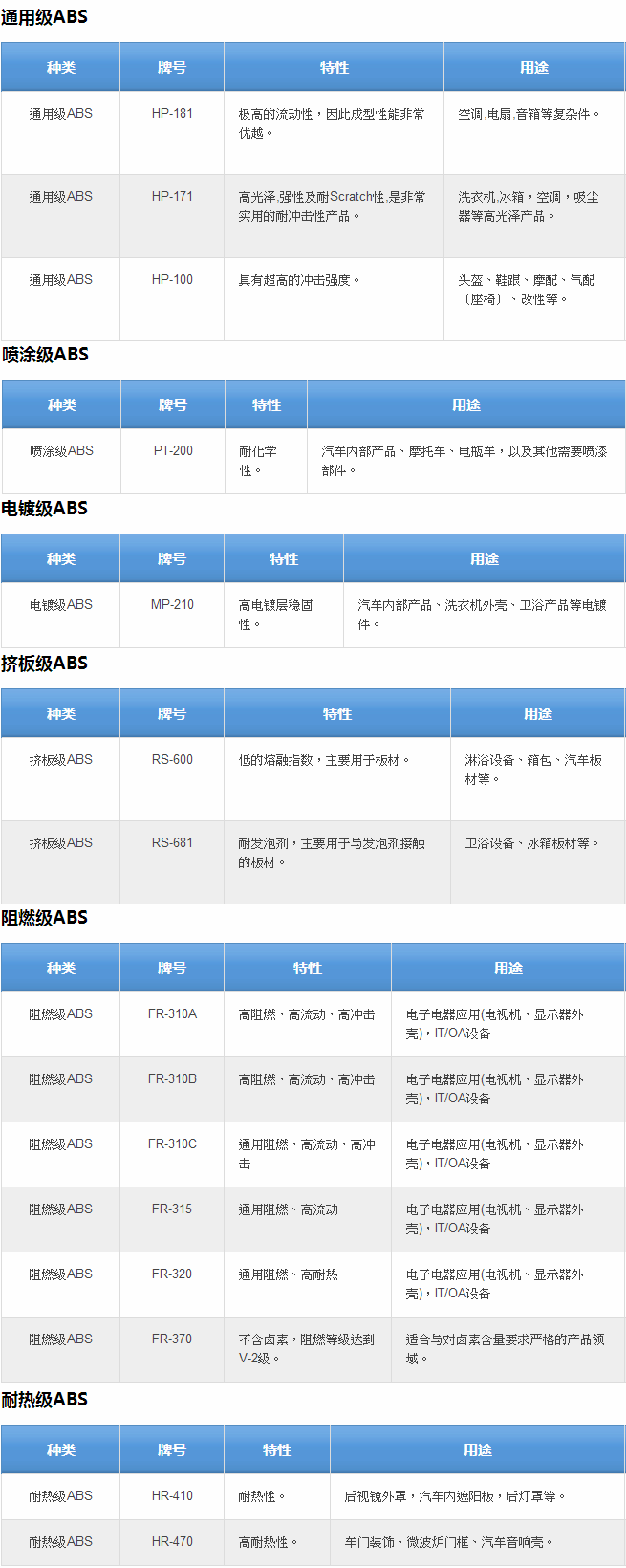 臺(tái)灣化學(xué)纖維TAIRILAC系列ABS塑膠原料