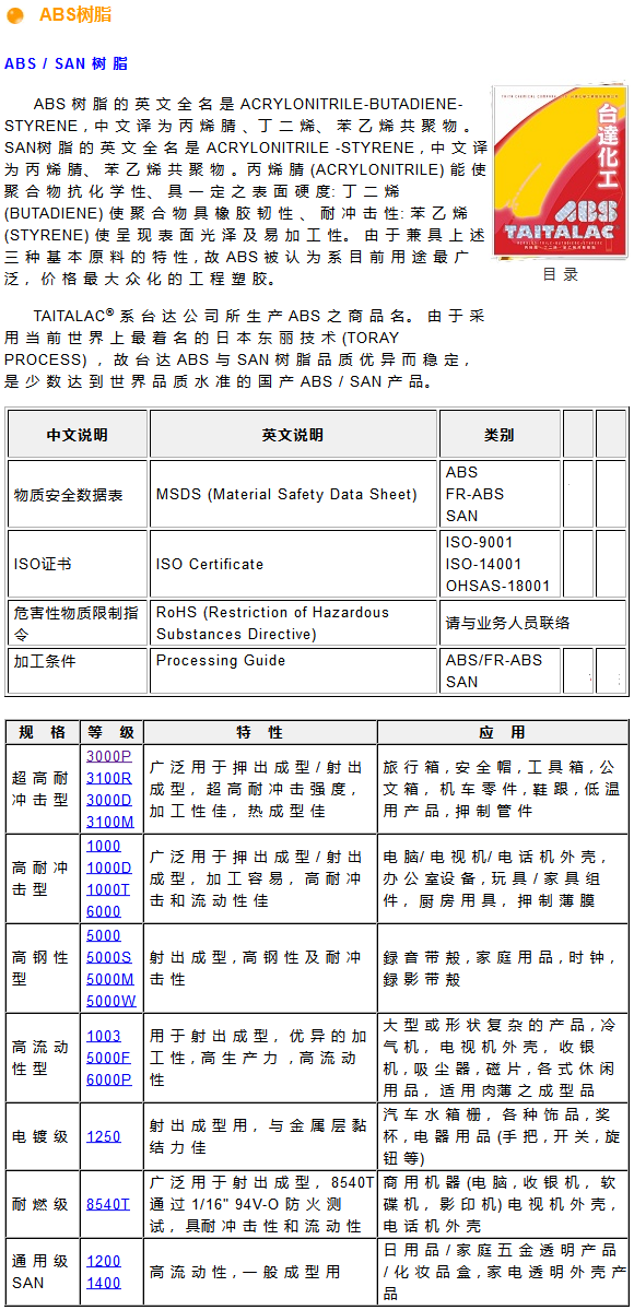 >> 臺(tái)灣臺(tái)達(dá)Taitalac品牌系列ABS塑膠原料