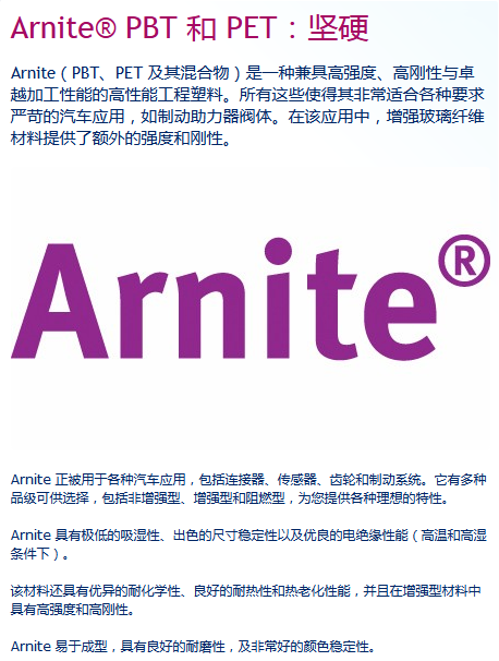 荷蘭帝斯曼DSM(Arnite)PBT塑膠原料應用