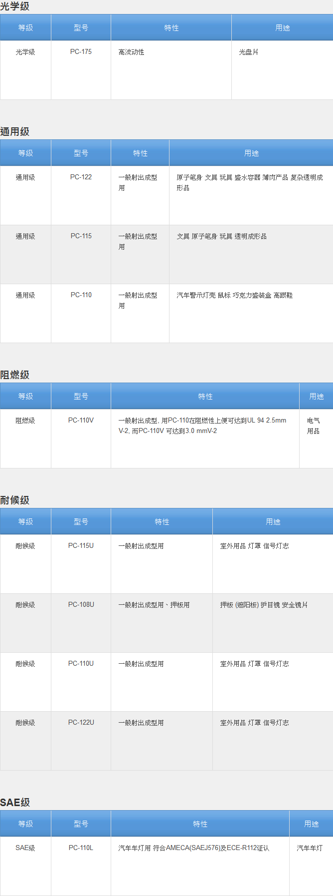 PC-110為流動性適中的產品,其應用范圍廣泛,舉凡強度要求高的及耐熱要求較高的透明部品