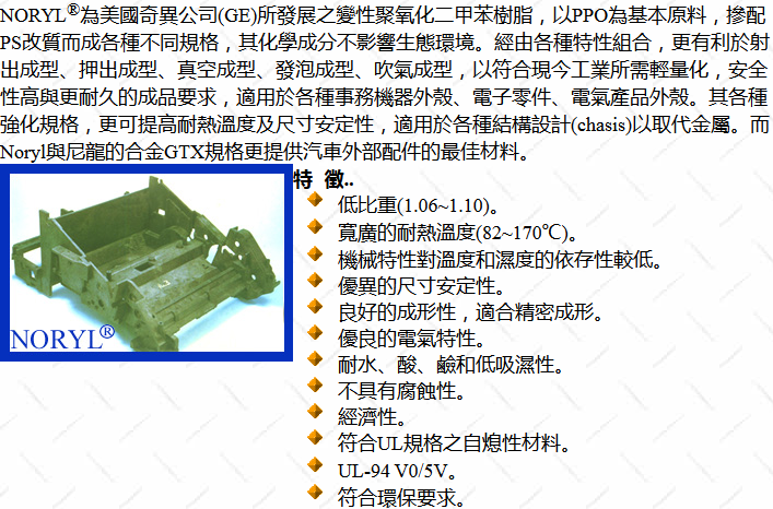 NORYL PPO GFN3L Resin SABIC Innovative Plastics Asia Pacific PPE+PS