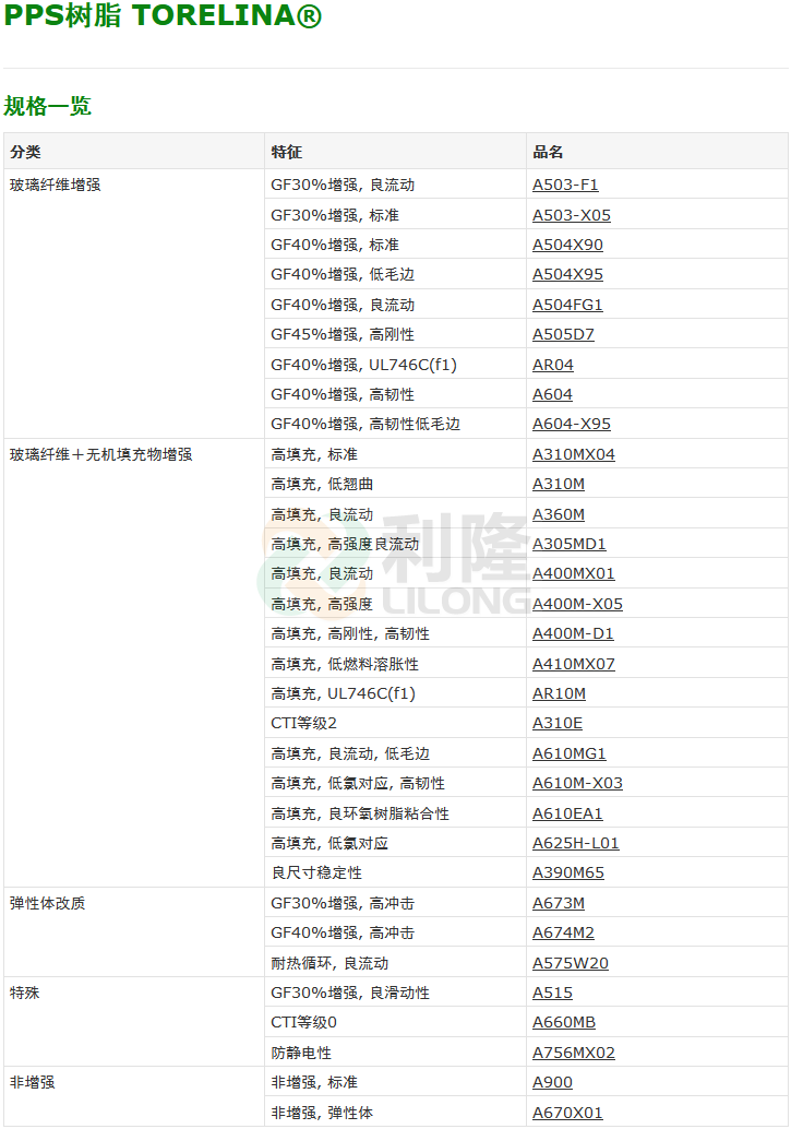 >> 日本東麗Torelina品牌聚苯硫醚PPS工程塑料